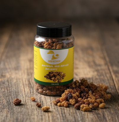 Our Organic Mulberries are a unique superfood, offering a satisfyingly chewy texture and a mild, honey-sweet taste. Unlike many other fruits, mulberries are a surprising source of plant-based protein and are exceptionally high in Vitamin C, iron, and powerful antioxidants. They are the perfect choice for boosting the nutritional profile of your smoothies, granola, or enjoyed alongside a warm cup of tea.